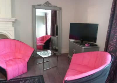 Douceur et harmonie sont les maîtres mots de la décoration de cette chambre. Elle est décorée dans des tons de gris et de fuchsia. L’élégance du fuchsia insuffle une sensation de fraîcheur… Associée aux tons gris, elle apporte calme et sérénité.